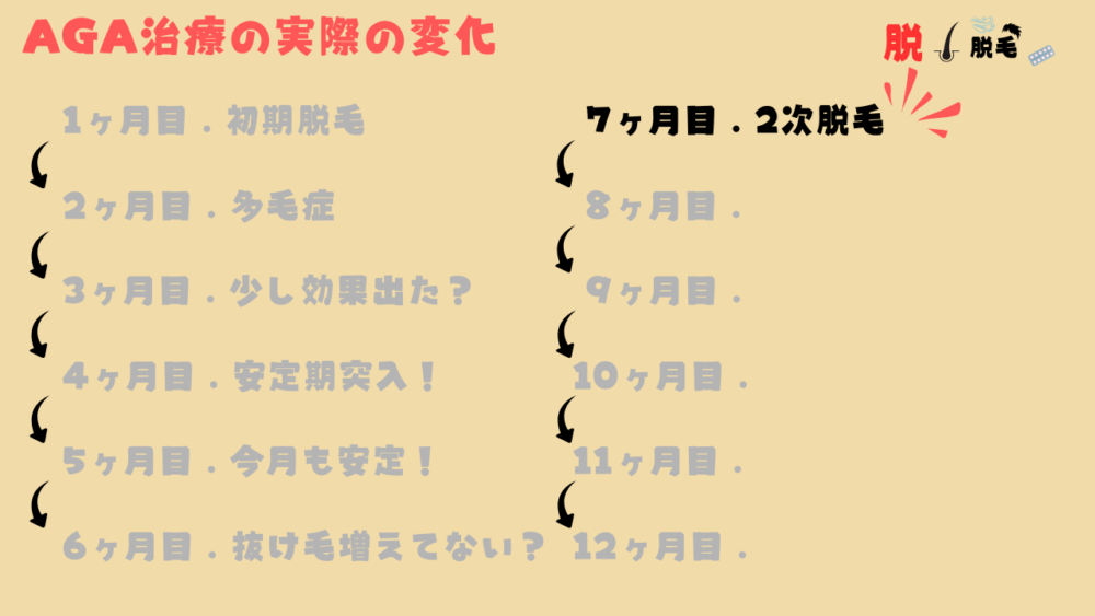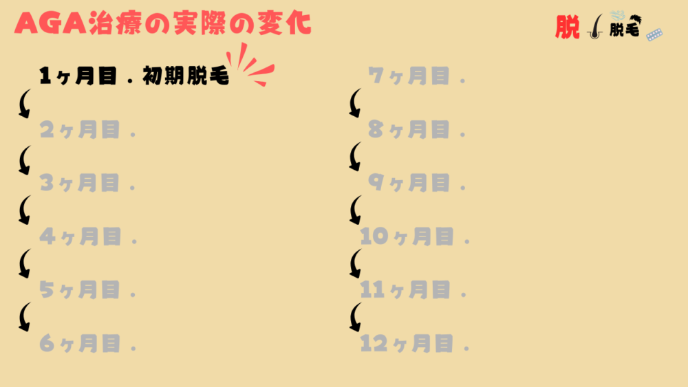 - 1ヶ月目:初期脱毛で一時的に悪化して見える