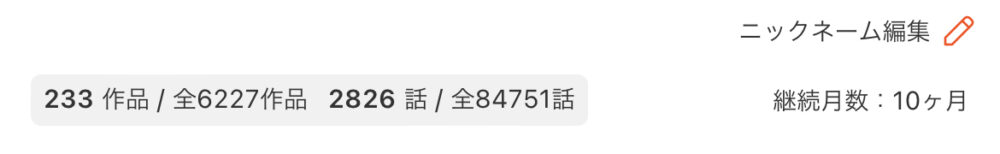 こんな感じで作品数や継続月数が表示されます。