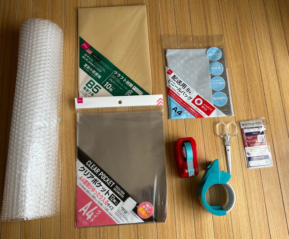 売るものの大きさによっては段ボールも必要になりますが、段ボールを使った発送は送料が高くなりますし、基本的にはこれで大体のものは発送できます。